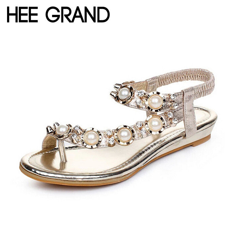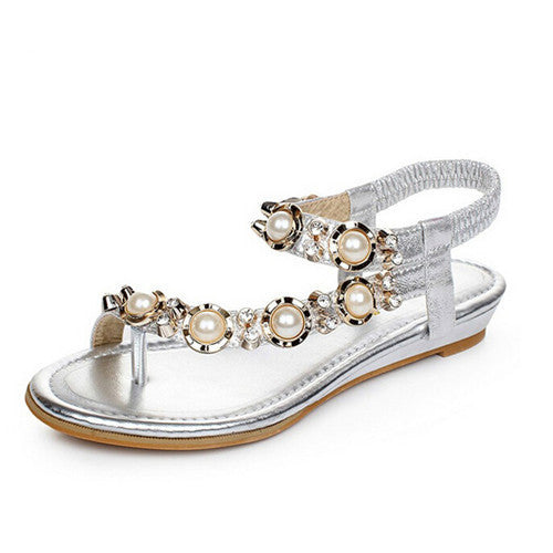 Rhinestone Woman Roman Sandals Flat With Summer Shoes Beach Bohemia Beading Elastic Band Flip Flops XWZ2035