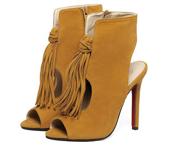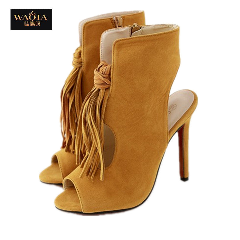 Shoes Women's Sandals 2016 European Summer Tassel ladies Shoes high heels Sandalias Mujer Open Toe Large Size 40 Black/Brown